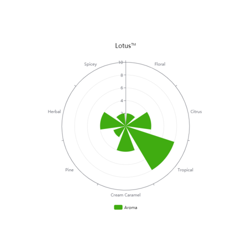 Lotus™ offers exceptional aromatic characteristics, boasting waves of orange and vanilla followed by notes of candied grape and tropical fruit aromas.